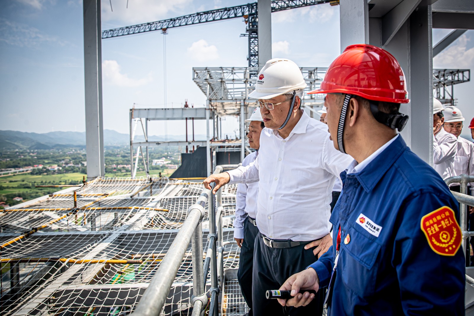 刘国跃在岳阳电厂2×1000MW工程建设现场,详细了解安全生产、工程进度、机组调试、发展规划等情况,看望慰问了高温下坚守一线的干部职工。他强调,要坚决扛起能源电力保供主体责任,加快推进支撑性电源项目建设,树立“设计是灵魂,质量是生命”的理念,坚持“两高一低”建设目标,打造现代化的绿色燃煤智慧示范电厂,为保障地区经济社会高质量发展提供能源支撑。